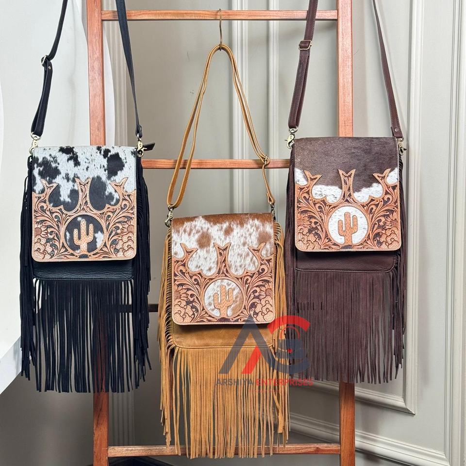 Product name:Hand Tooled Leather Fringe Crossbody Bag