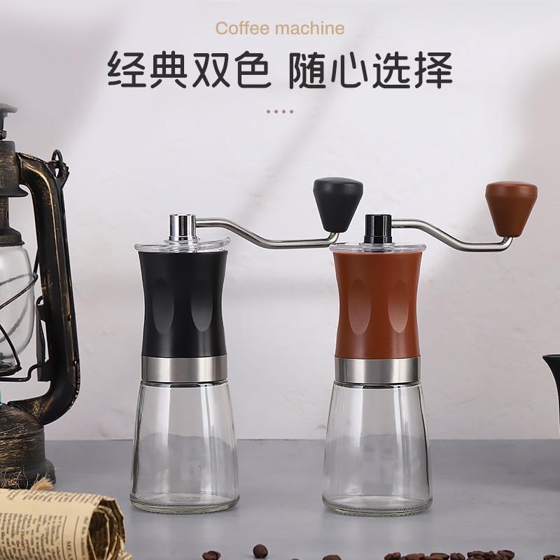 Portable Manual Coffee Grinder With Glass Container For Home Use Black And Brown Solid Color