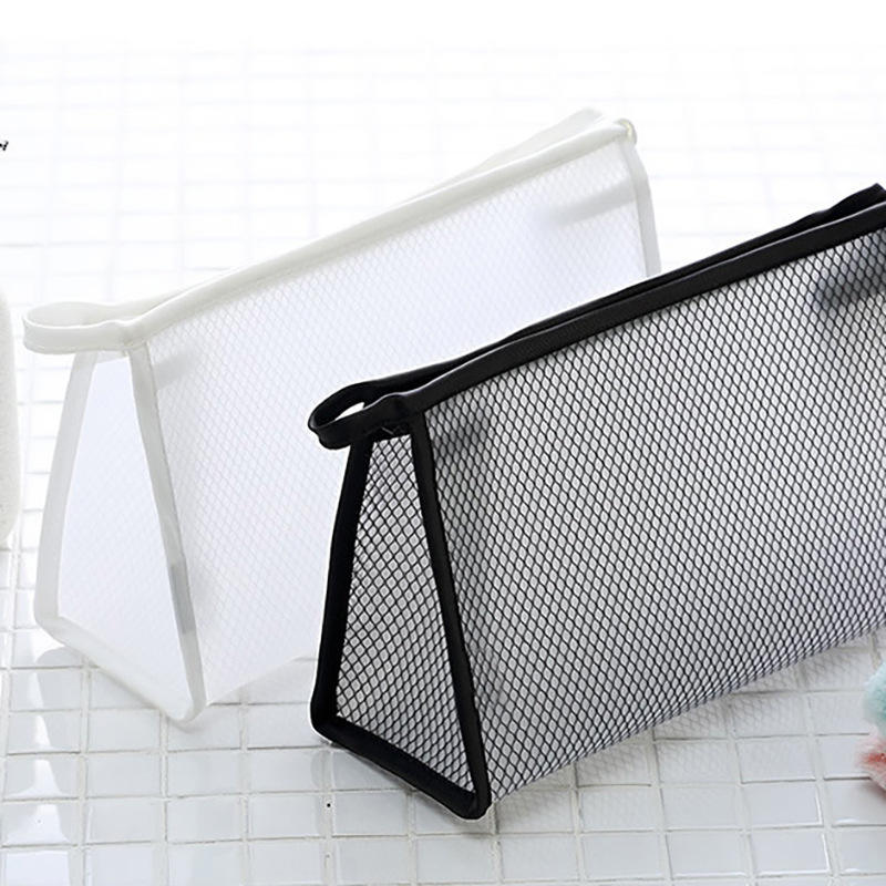 Portable Mesh Toiletry Bag Rectangle Waterproof Transparent Travel Cosmetic Storage Bag Black And White