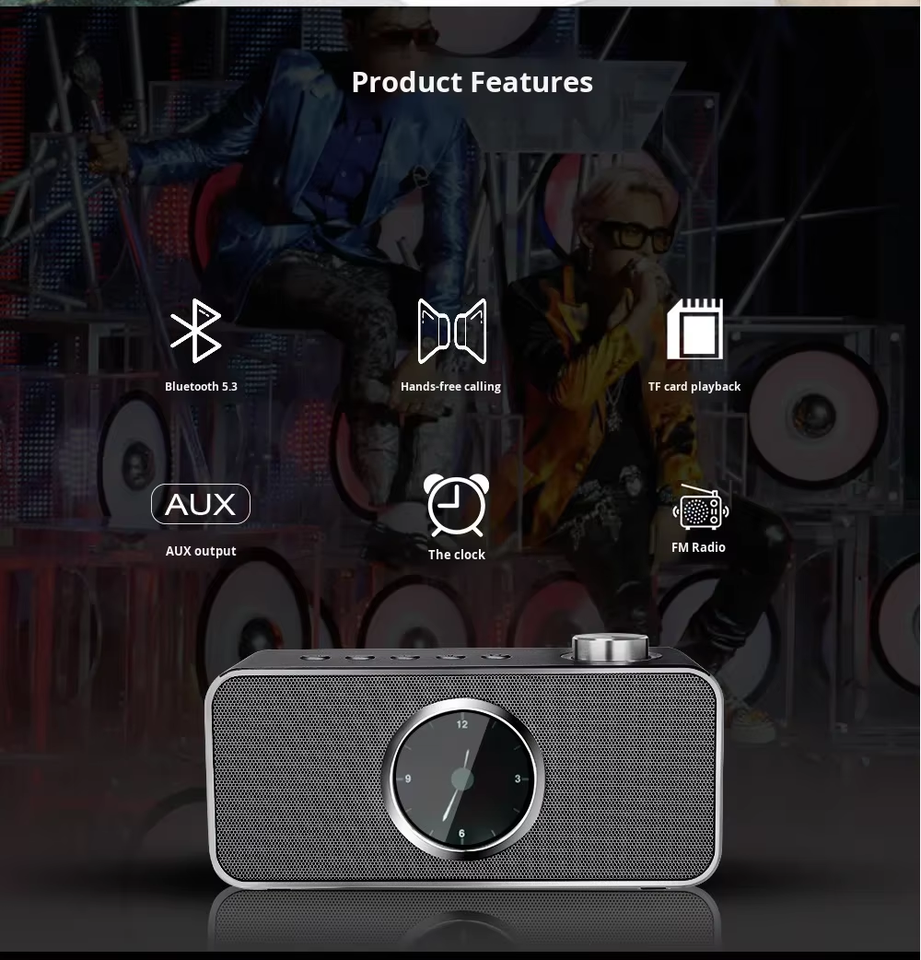 feature:Alarm, Clock, colorful LED light, Wireless Charger for Mobile Phone, Radio, Phone Function