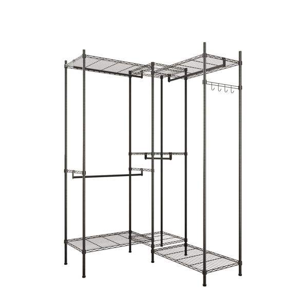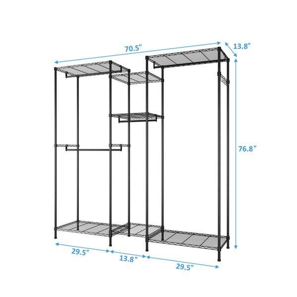 Portable Metal Garment Rack Closet Organizer with Hanging Shelf Home Use Clothes Organizer