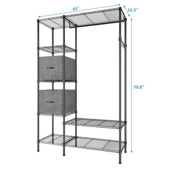 Portable Metal Garment Rack with Hanging Shelf Home Closet Organizer for Clothes Organizing