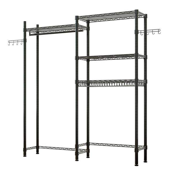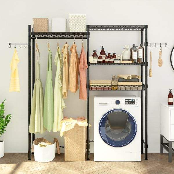 Portable Metal Garment Rack with Washer Dryer Storage Shelf Space Saving Bathroom Closet Organizer Easy Clothes Hanger