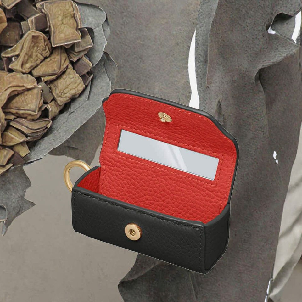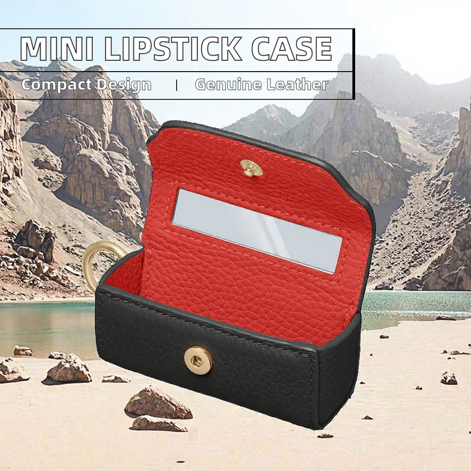 Portable Mini Luxury Custom Lipstick Storage Case Lady Style Magnetic Leather Makeup Organizer Bag with Mirror Thread Pattern