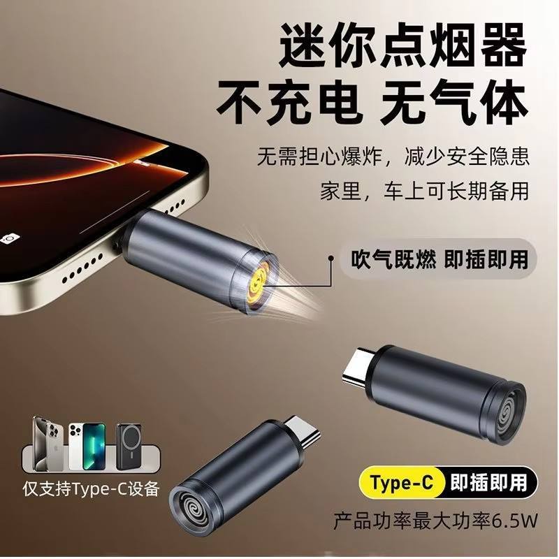 Portable Mini Type-C Car Charger Travel-friendly USB Adapter with Windproof Lighter for Outdoor Emergency Situations