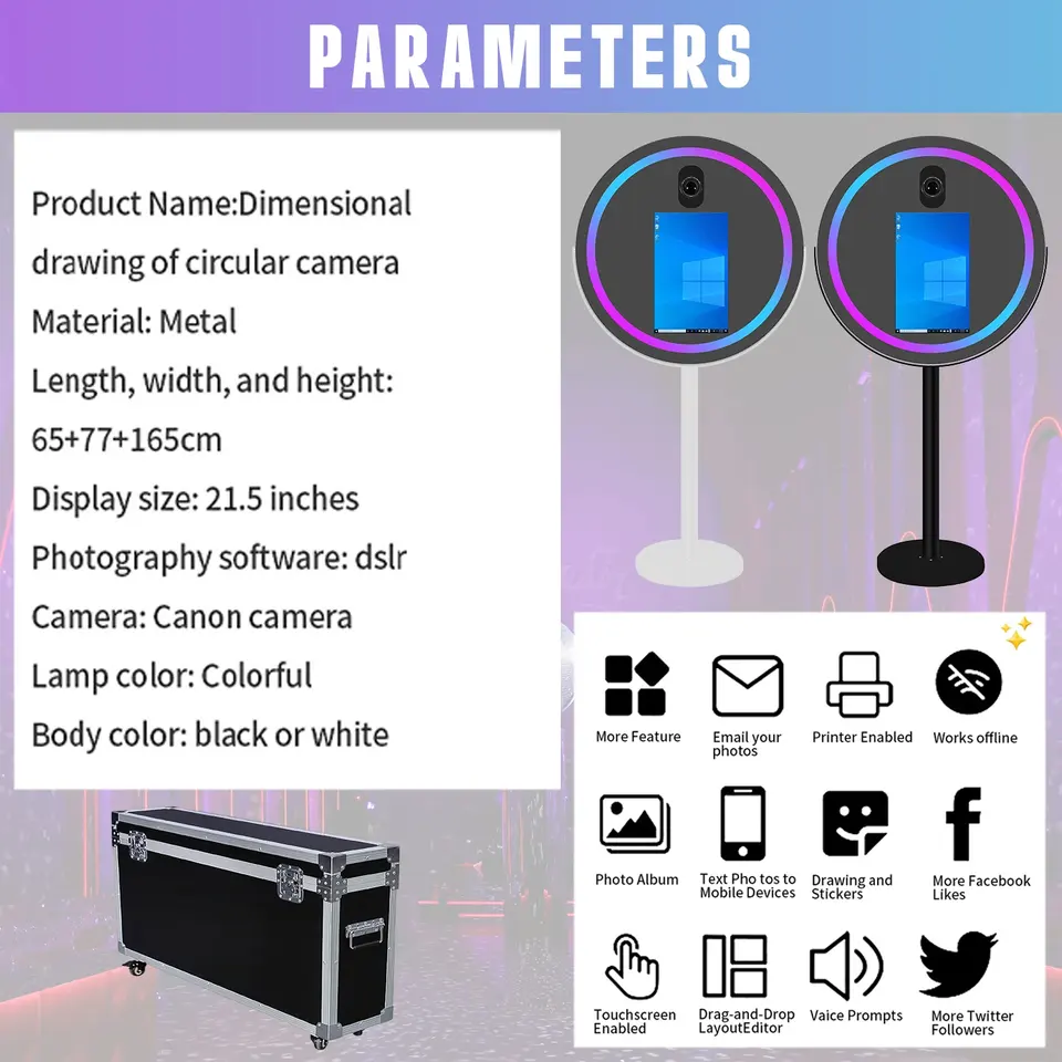 Portable Cosmetic Mirror Dual Sided Magnifying Lighted Foldable 21.5 Inch Touch Screen Daily Makeup Use
