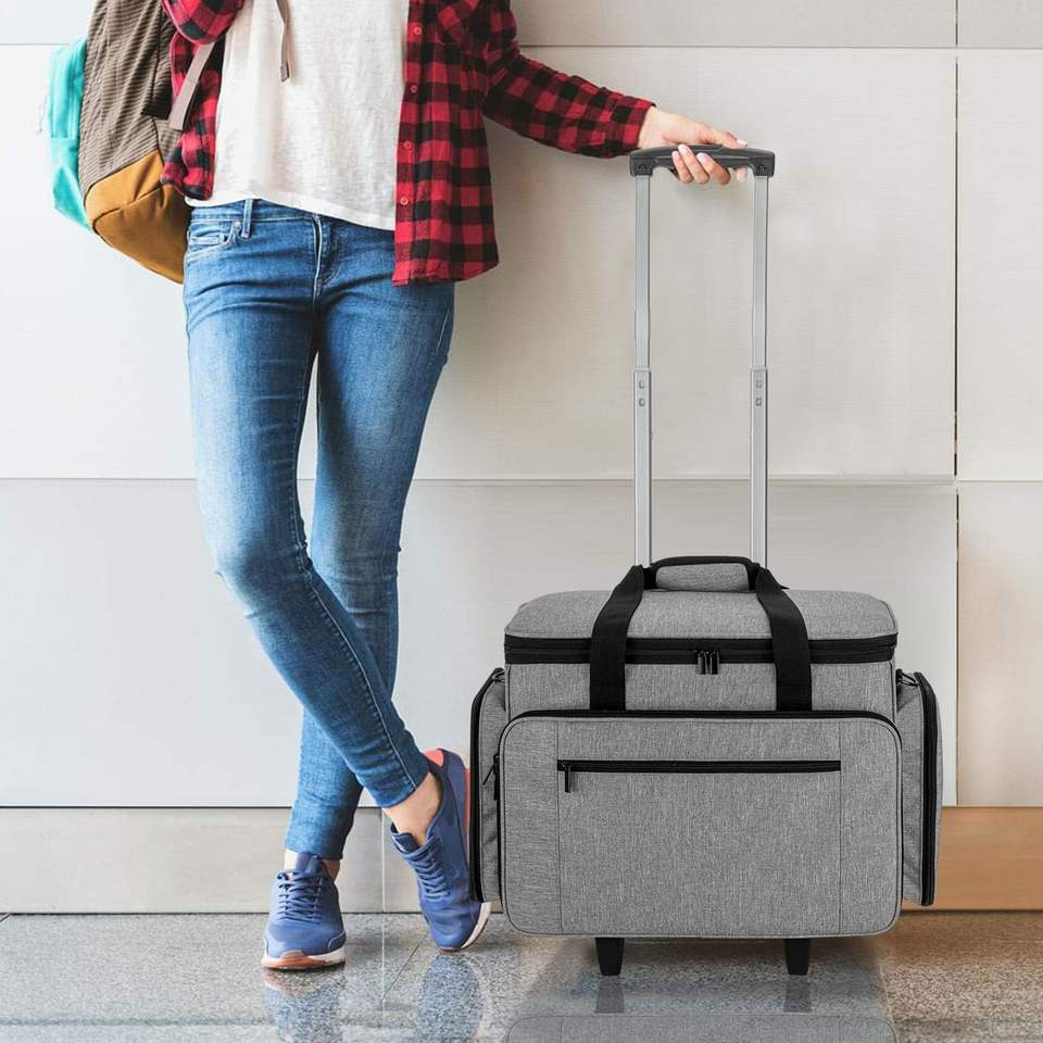 Portable Heavy Duty Water Resistant Zipper Multiple Pockets Trolley Travel Tote Bag Sewing Machine Carrying Case for Universal