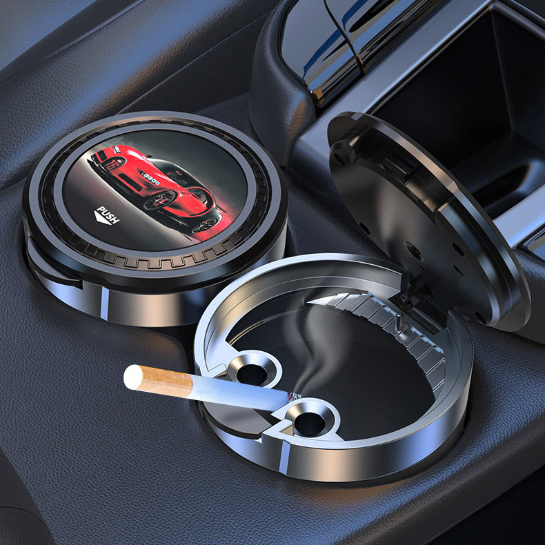 Portable One-Button Open Cover Car Ashtray with Creative LED Lights Large-Capacity Creative LED Lights for Cars