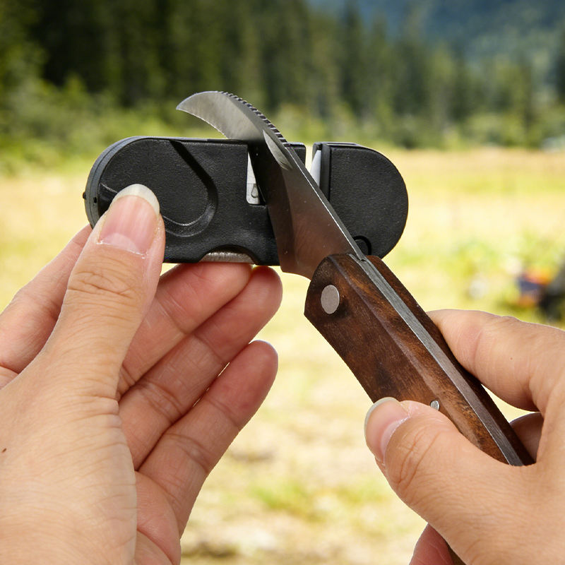 Portable Outdoor Durable Tungsten Steel Travel Foldable Knife Sharpener with Ceramic Polishing Rod