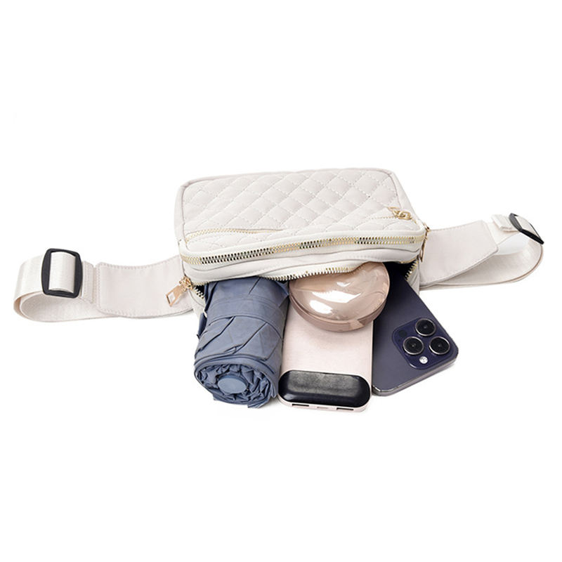 Custom Quilted Fanny Pack for Women Portable Oxford White Waist Bag with Zipper Closure Waterproof Outdoor Sport Crossbody