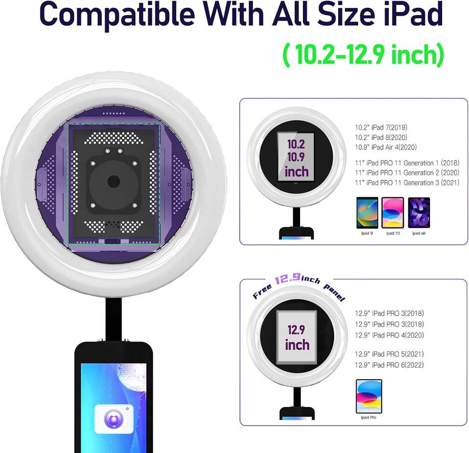 Portable Photo Booth Stand Compatible with Software APP and Remote Control, RGB Ring Lights Music Sync