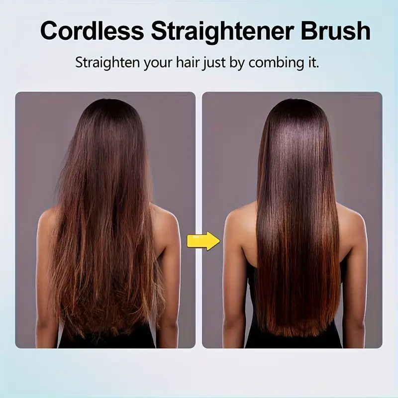 Portable Rechargeable Handheld Straightener - 4 Temperature Settings, Fast Heating Cordless Hair Comb