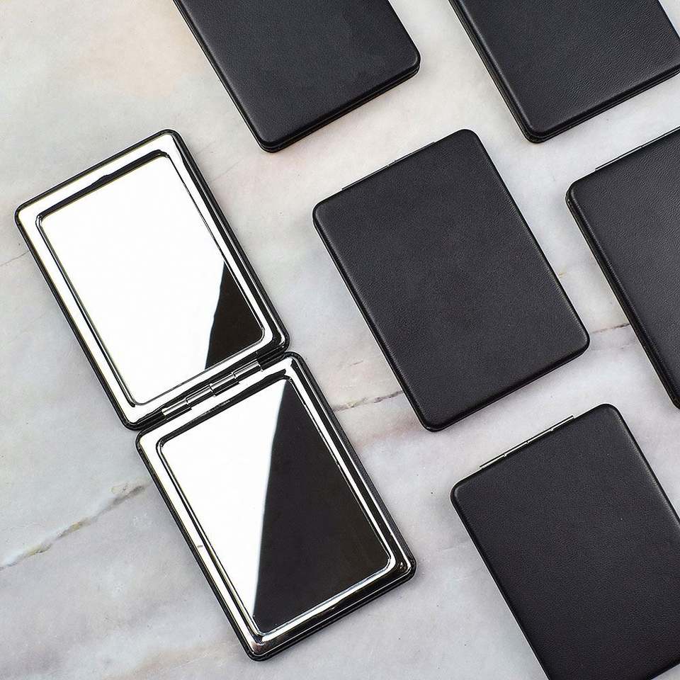 Portable Rectangular PU Leather Folding Vanity Mirror Daily Use Cosmetic Makeup Tool