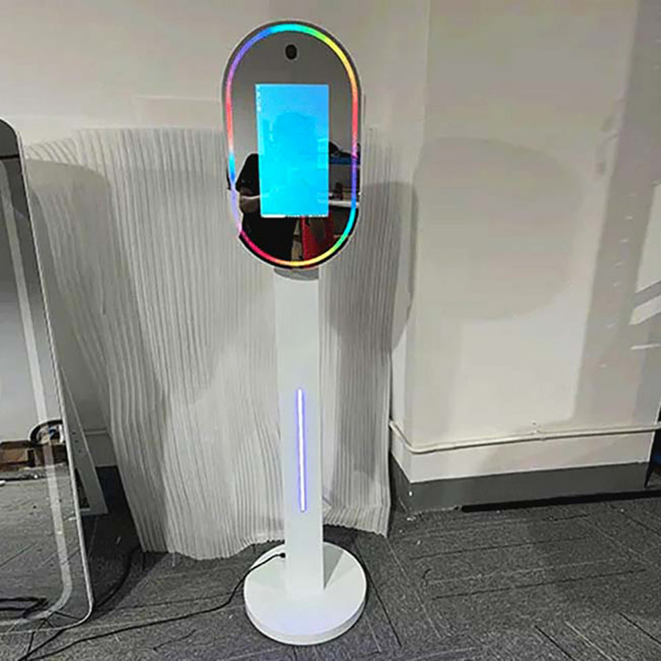 Portable Selfie Mirror Photo Booth with RGB LED Lights for Smartphones & Camera Metal Frame Remote Control Custom Logo Option