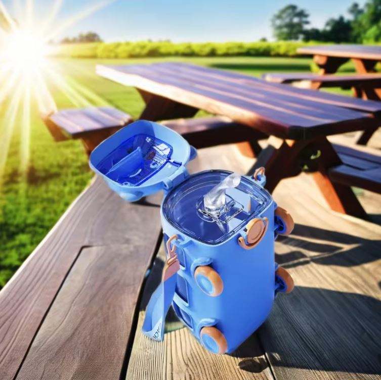 Portable Shoulder Strap Kids School Baby Toy Water Bottle Adorable Bus Shape Straw 900ml Eco-Friendly Boiling Water Applicable