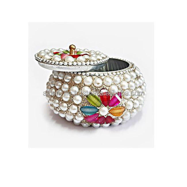 Portable Small Sustainable Jewelry Storage Box with Beaded Mirror Organizer and Trinket Gift Box for On-the-Go Access