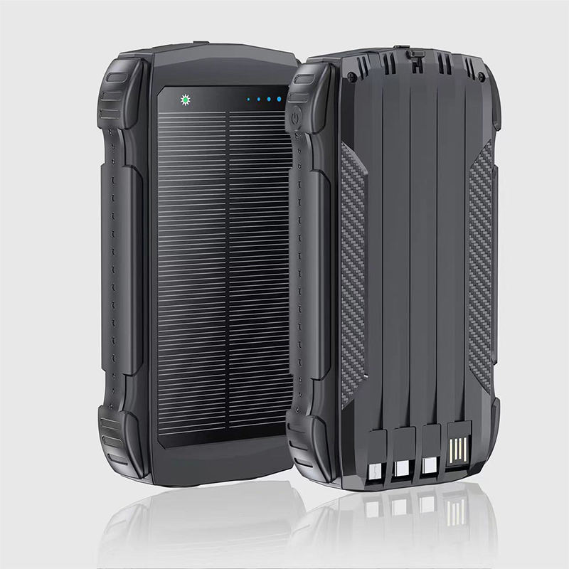 Portable Solar Panel PowerBank Built-in Cable Fast Charging 20000mAh 10000mAh Power Bank With LED Flash Light for Mobile Phone