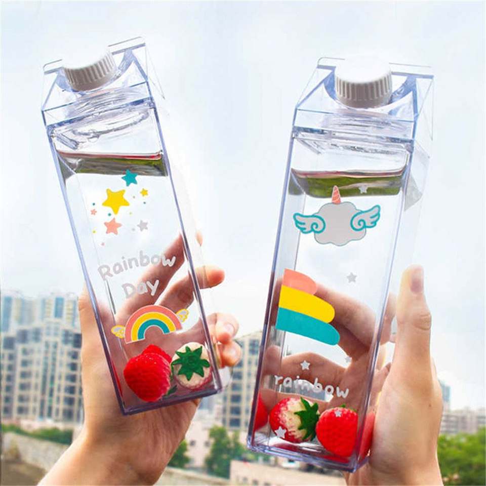 Portable Square Milk Carton Box Bottle Reusable Coffee Cup Clear Plastic Tumbler Direct Drinking Leak-Proof Dishwasher Safe
