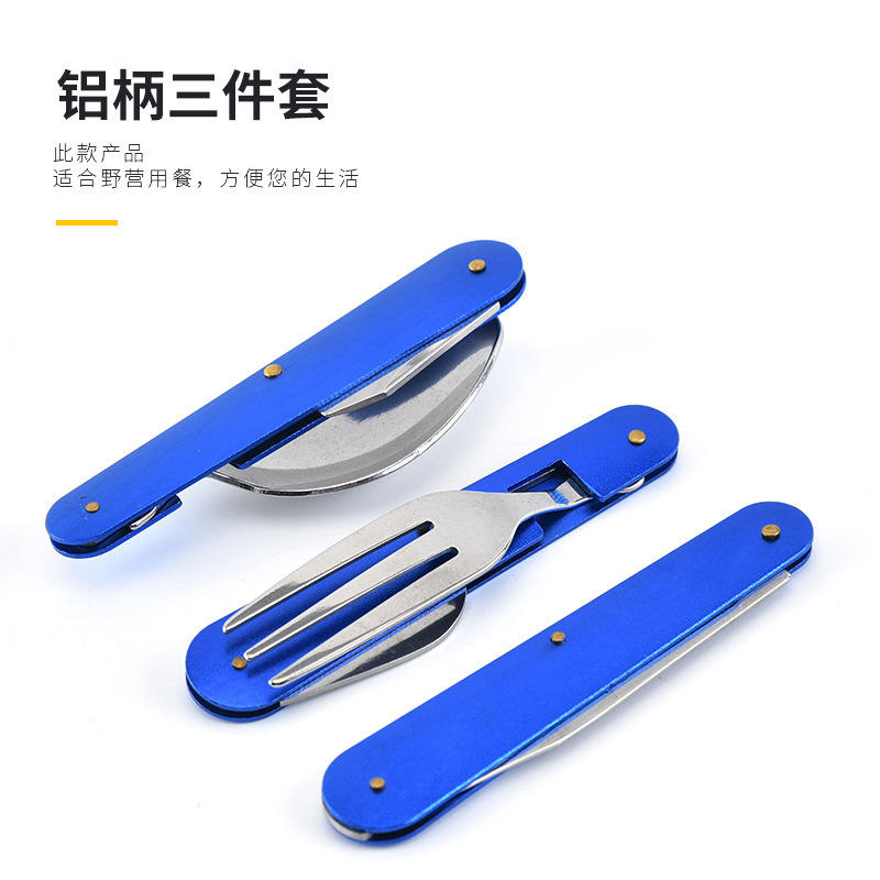 Portable Stainless Steel Camping Cutlery Set Knife Fork Spoon Foldable Rectangular Western Style Outdoor Picnic Utensils