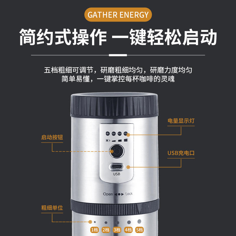 Portable Stainless Steel Coffee Grinder 20G USB Powered For Home Use With Built In Grinder And Travel Cup