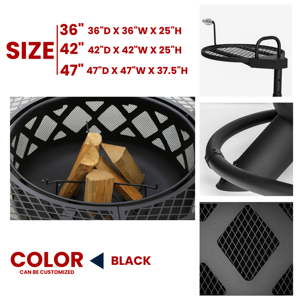 Portable Steel Charcoal Pizza Oven BBQ Grill Outdoor Kitchen Camping Stove Fire Pit Bowl Wood-Burning Heater