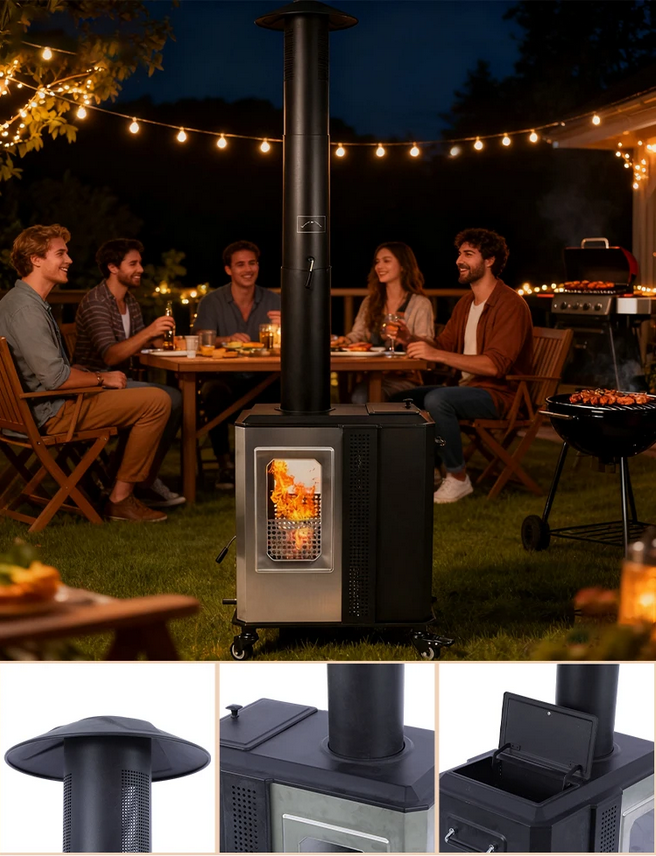 Portable Steel Pellet Wood Burning Camping Stove Chimney | Waterproof Durable Tent Heater Outdoor Cooking Stove for Camping