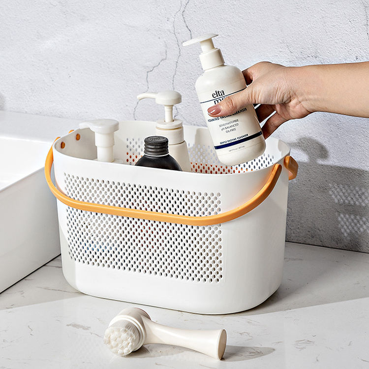 Portable Storage Basket With Handle Multifunctional Bathroom Plastic Storage Basket With Air Hole