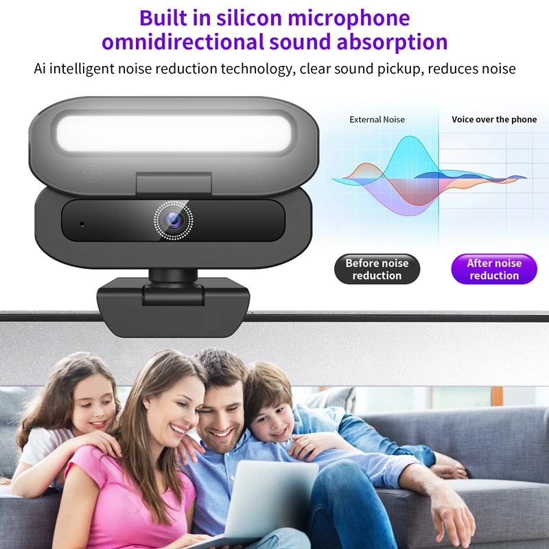 Portable Streaming with Adjustable Stand Auto Focus 4K UHD Built-in Fill Light Webcam for Video Conference Live Streaming