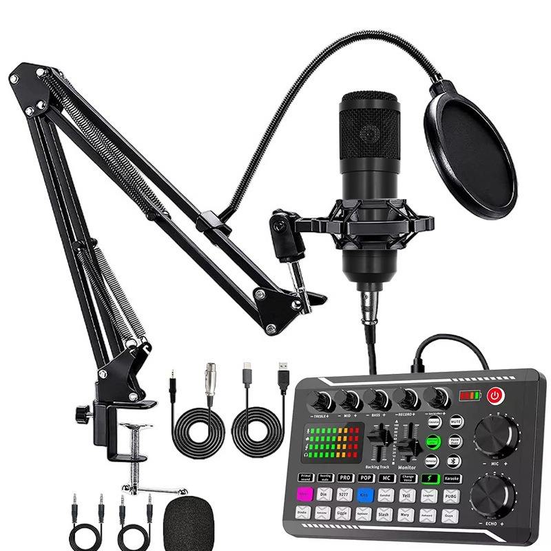 Portable Studio Microphone Audio Interface Sound Card,Computer Audio Mixer Podcast Equipment Bundle External Sound Cards