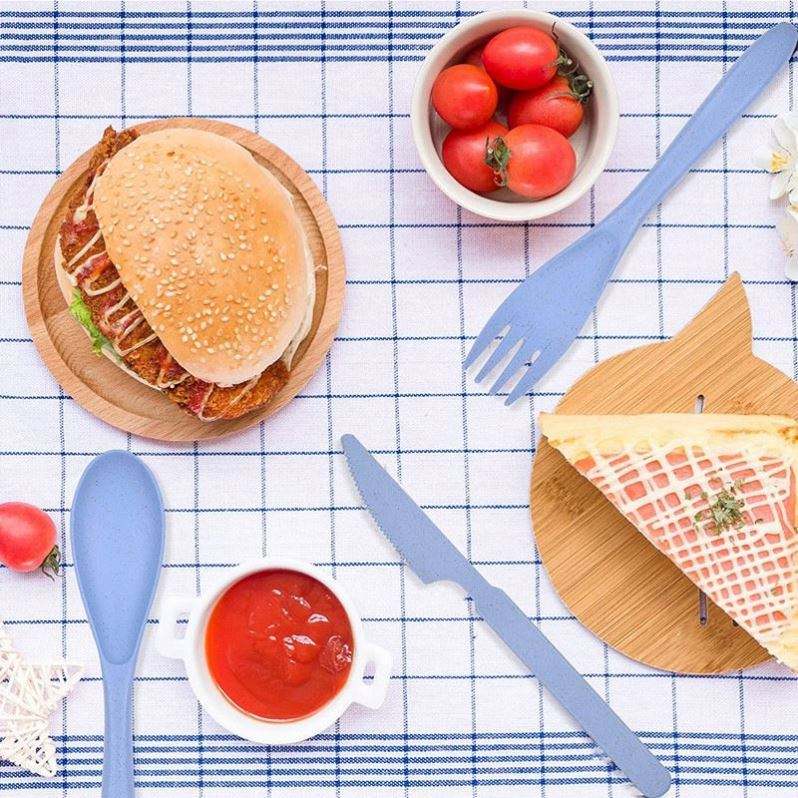 Portable Sustainable Plastic Travel Cutlery Set with Case Camping Picnic Reusable Fork Sets Outdoor BBQ Cartravel Tableware