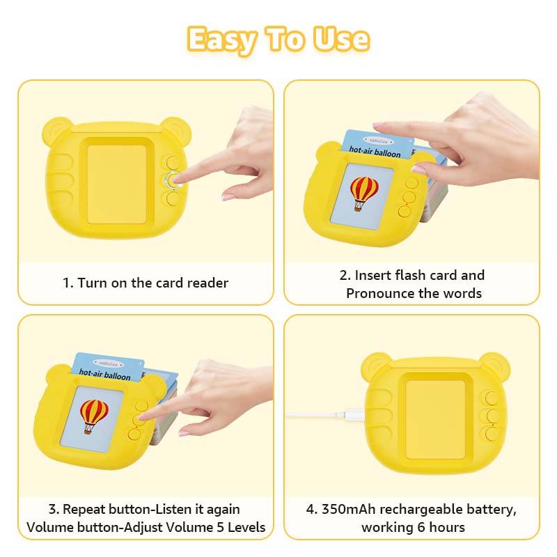 Portable Talking Flash Card Reader Musical Baby Sight Words Learning Educational Toy with Lithium Battery for 1-6 Years Old