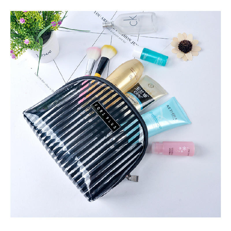 Portable Transparent PVC Cosmetic Bag with Zipper Closure Fashionable Waterproof Striped Shell Clear for Toiletry Bag & Cases