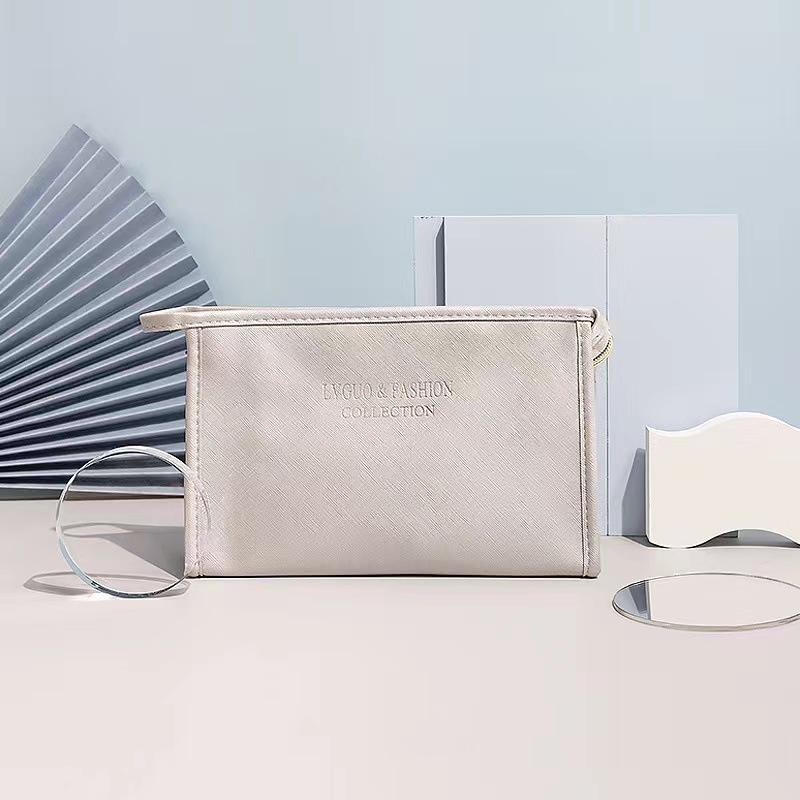 Portable Transparent Waterproof PU Cosmetic Storage Bag for Women Handheld Zipper Closure Travel Wash Accessory Fashion Style