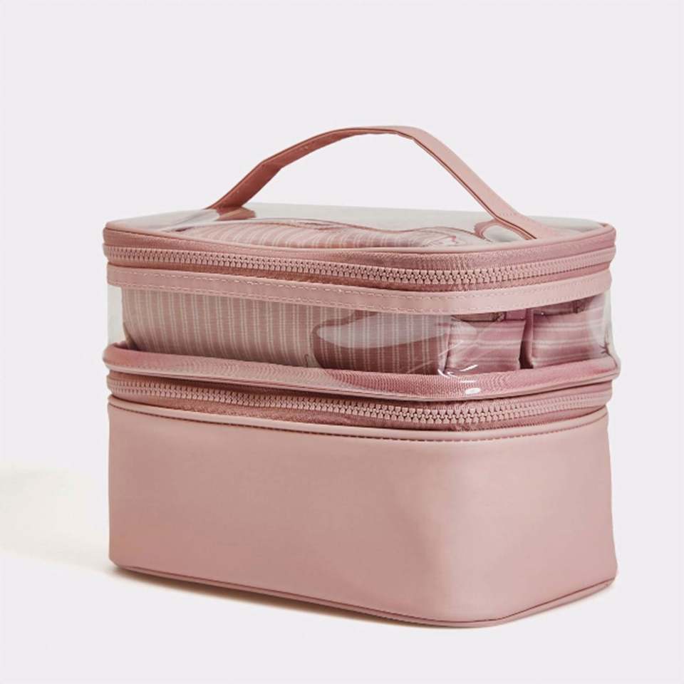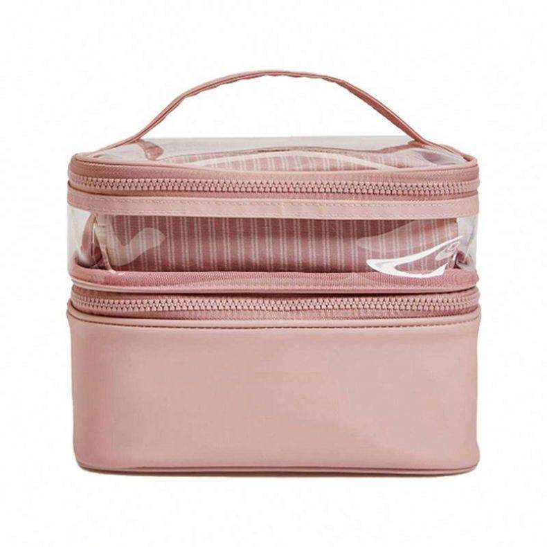 Portable Travel Large Capacity Double-layer Transparent PVC Makeup Storage Bag Female Toiletry Cosmetic Bag Case