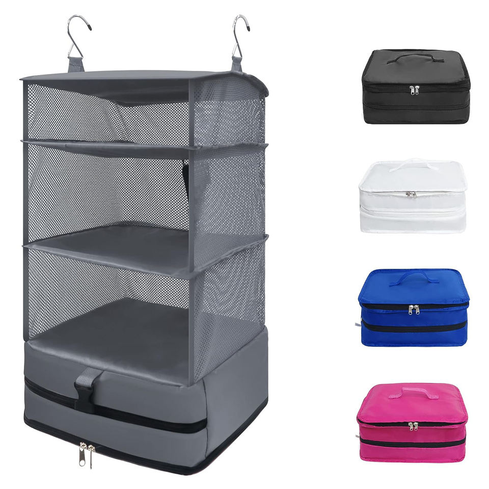 Portable Travel Suitcase Organizer Packing Cubes Carry-On Closet Insert Large Capacity Travel Bags Collapsible 4-Shelf Hanging T