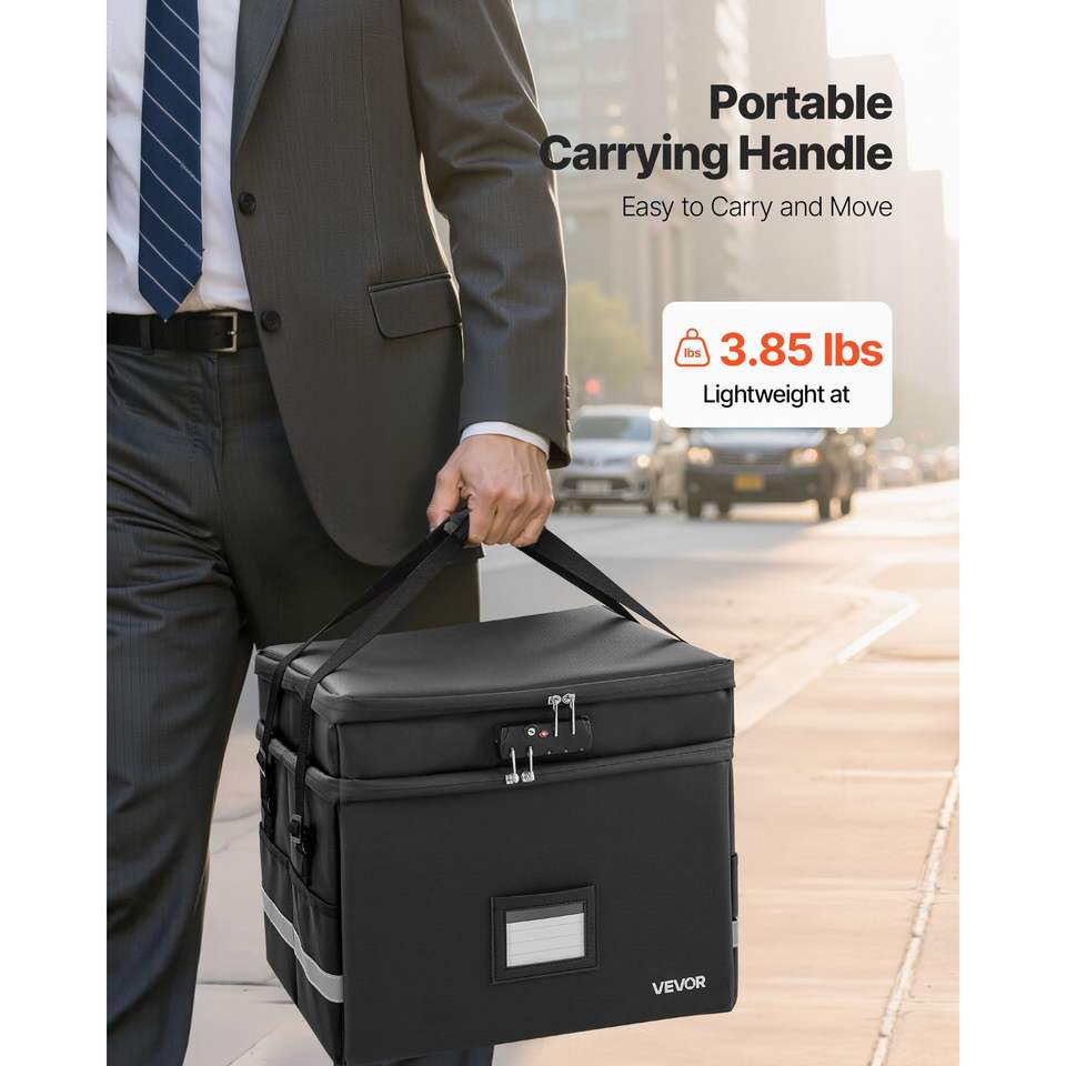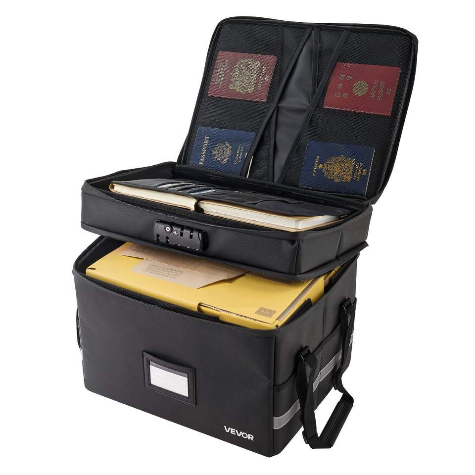 Portable Two-Layer File Storage Fireproof Document Box 1832 Fahrenheit Heat Insulated Waterproof and Lockable Bag