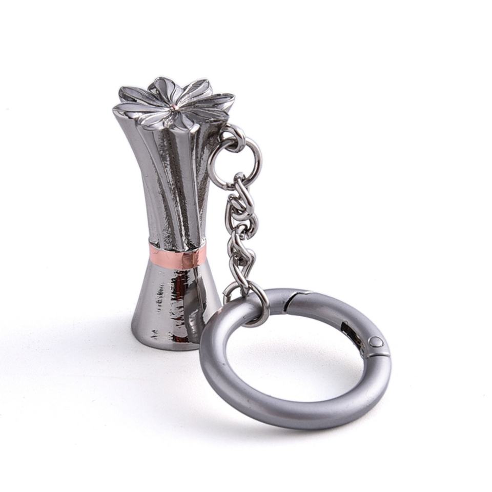 Portable Unique Flower Design Silver Color Small Size Metal Keychain