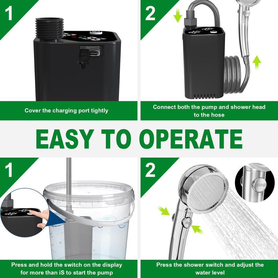 Portable Water Pump Shower 7800mAh IPX7 Waterproof Filtered Water Smart Display For Camping Hiking Beach Trip Dog Bath