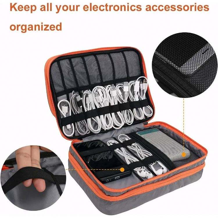 Portable Waterproof Double Layers Cable Organizer All-in-one Electronics Accessories Cases Travel Organizer Storage Bag