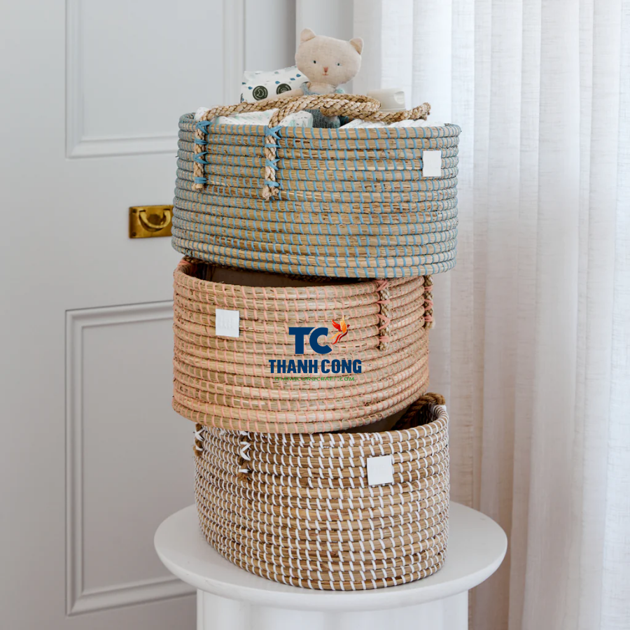 Portable Wicker Baby Diaper Organizer Bag Multi-Compartment Storage Tote for Nursery Home Travel and Baby Items