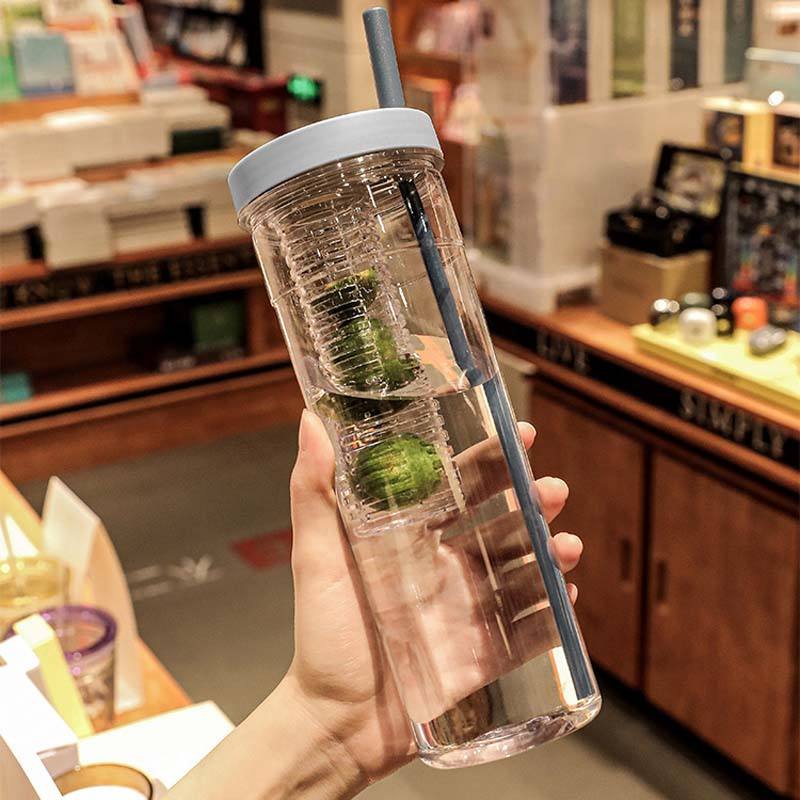 Portable Women's Office Fruit Tea Cup with Large-Capacity Glass and Plastic Straw Water Separation Feature