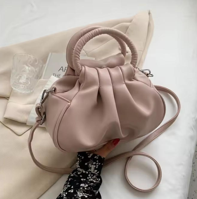 Portable retro folding cloud bag, casual underarm shoulder crossbody bag, solid color PU handbag, tote bag