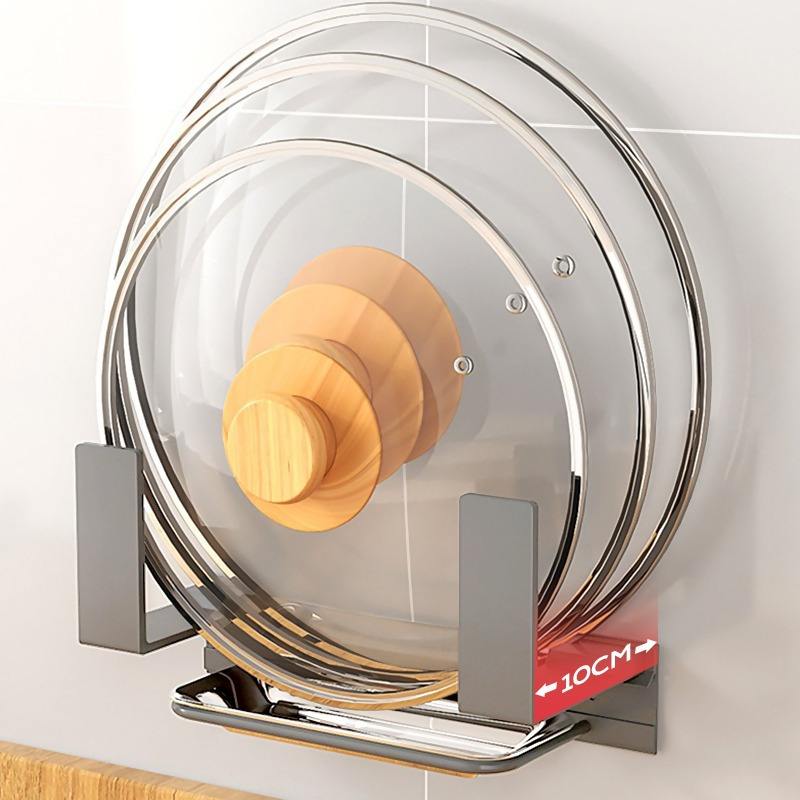 Pot Lid Rack Wall Mounted Polished Stainless Steel Punch Free Storage Solution For Kitchen Use