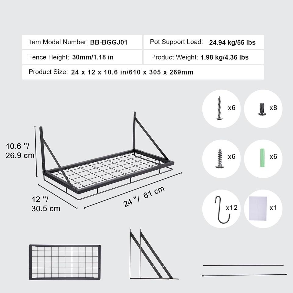 Pot & Pan Wall Mounted Storage Shelf Rack Hanging Rack with 12 S Hooks for Cookware Kitchen Hotel Restaurant Home Other Spaces