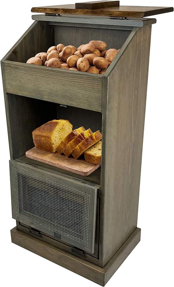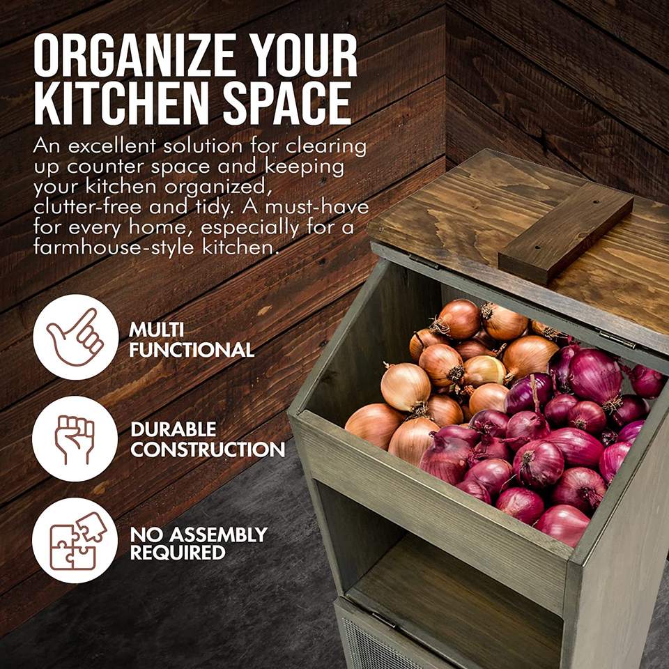 Wooden Bread Box & Onion Storage Bins Decorative Hand-made Classic Kitchen Steamable