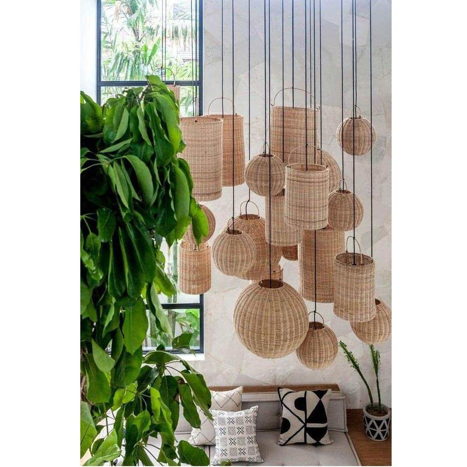 Powder-Coated Iron Frame Eco-Friendly Decorative Modern Handmade Round Rattan Lamp Shade Light Cover for Indoor Hotel Home Use