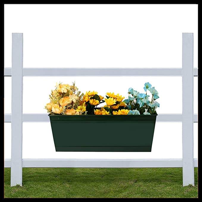 Powder Coated Rectangle Metal Railing Garden Planter for Indoor Home Decor & Outdoor Balcony Garden