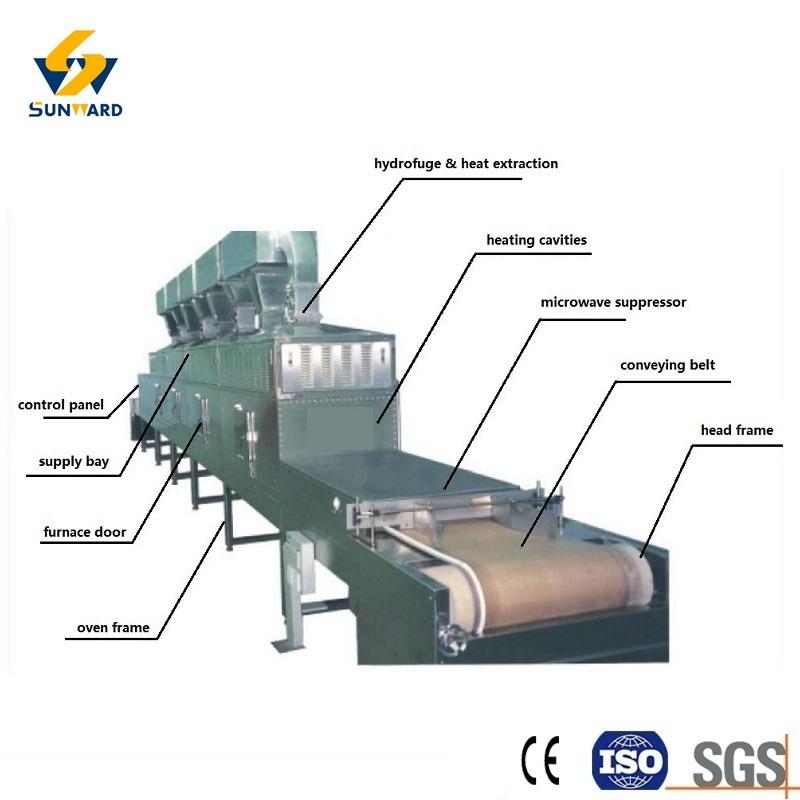 Powder state food microwave sterilization equipment 12kw belt type sterilization microwave machinery