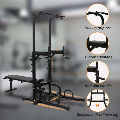Power Tower Dip Station with Bench Pull Up Bar Stand Adjustable Height Heavy Duty Multi-Function Fitness Training Equipment for
