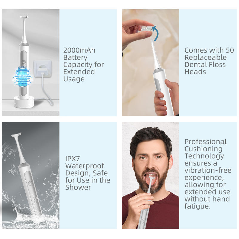 Accessories:Connection Rob*2, flosser head*50/20, charging cable, holder